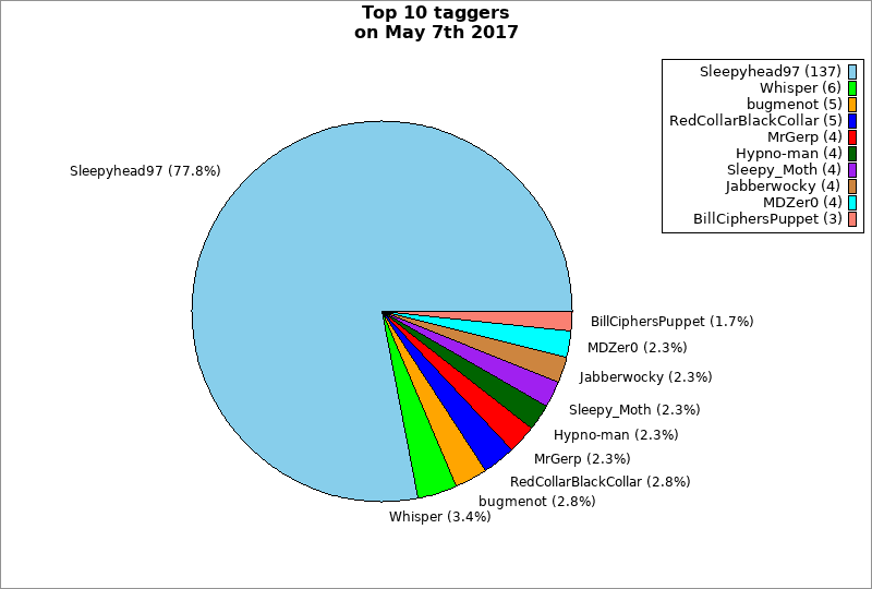 | Top 10 taggers on May 7th 2017 | ||