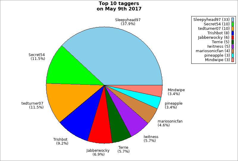 | Top 10 taggers on May 9th 2017 | ||