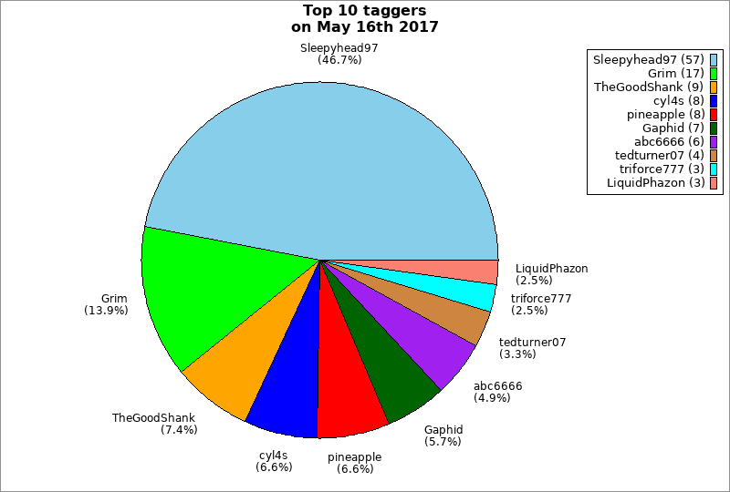 | Top 10 taggers on May 16th 2017 | ||