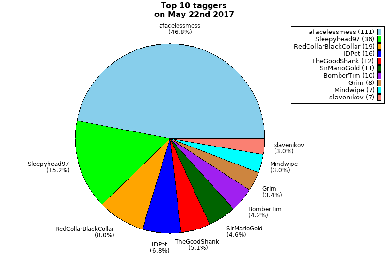 | Top 10 taggers on May 22nd 2017 | ||