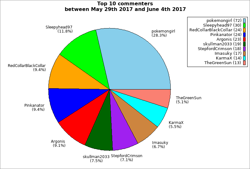| Top 10 commenters between May 29th 2017 and June 4th 2017 | ||