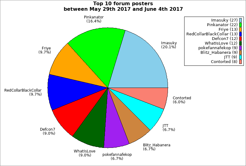 | Top 10 forum posters between May 29th 2017 and June 4th 2017 | ||