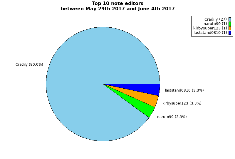 | Top 10 note editors between May 29th 2017 and June 4th 2017 | ||