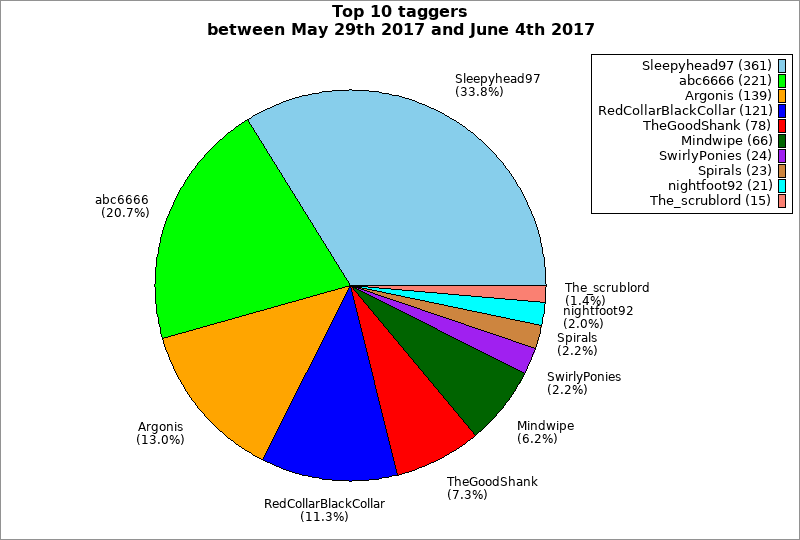 | Top 10 taggers between May 29th 2017 and June 4th 2017 | ||