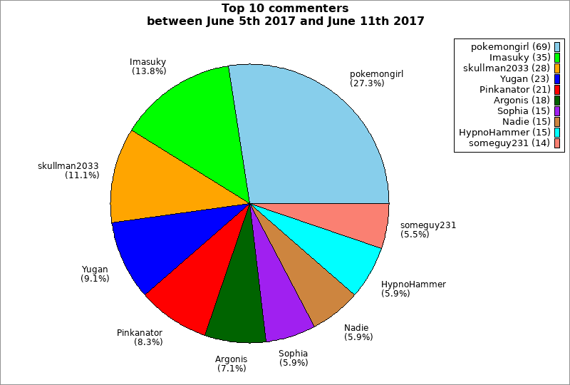 | Top 10 commenters between June 5th 2017 and June 11th 2017 | ||
