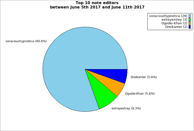 | Top 10 note editors between June 5th 2017 and June 11th 2017 | ||