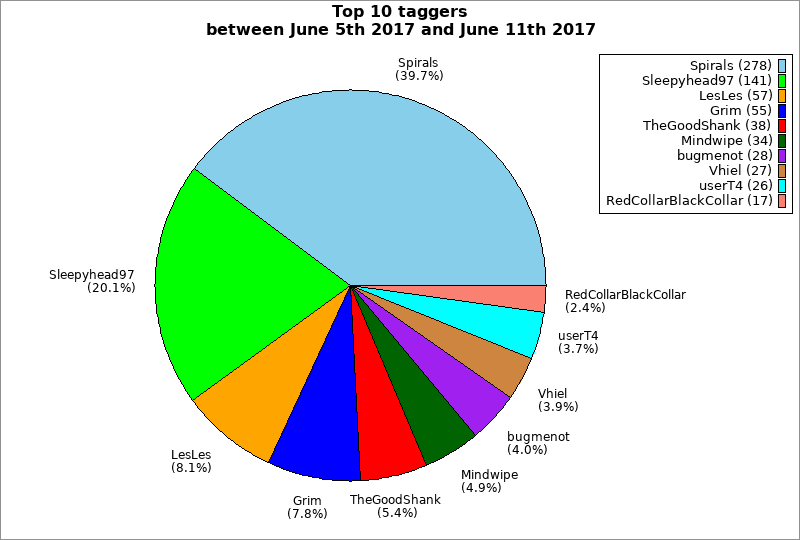 | Top 10 taggers between June 5th 2017 and June 11th 2017 | ||