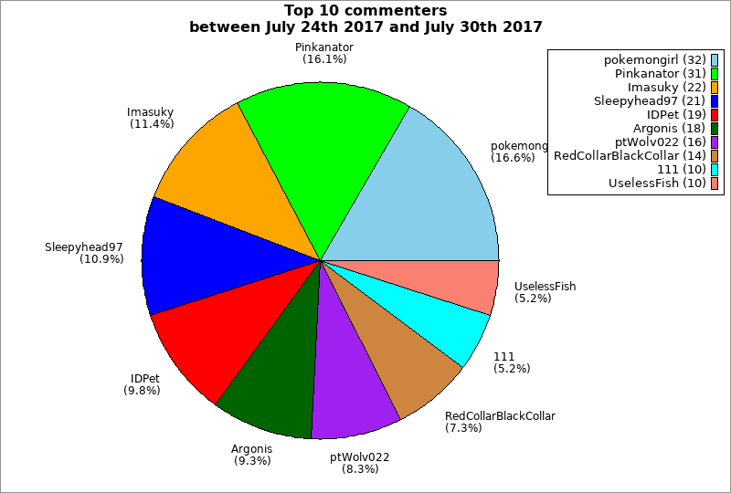 | Top 10 commenters between July 24th 2017 and July 30th 2017 | ||