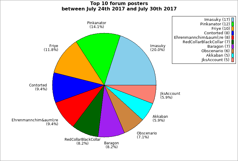 | Top 10 forum posters between July 24th 2017 and July 30th 2017 | ||