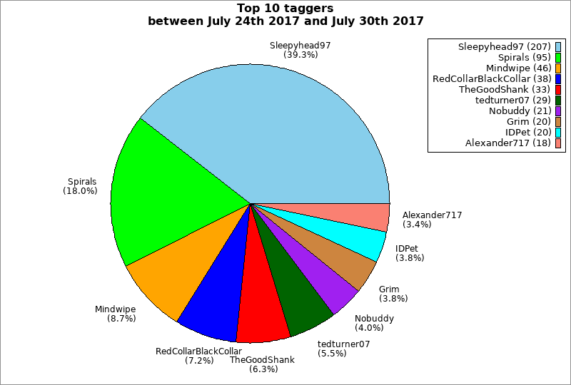 | Top 10 taggers between July 24th 2017 and July 30th 2017 | ||