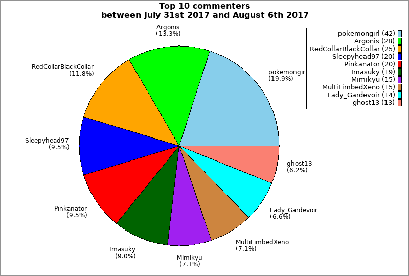 | Top 10 commenters between July 31st 2017 and August 6th 2017 | ||