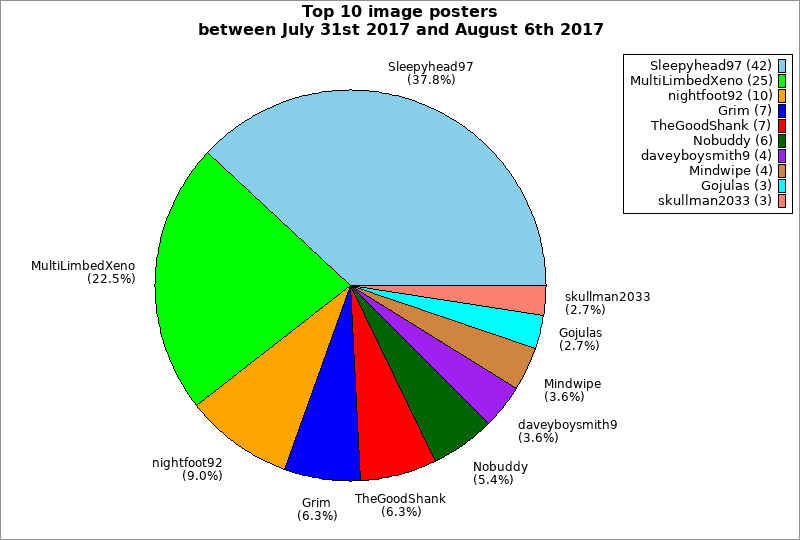 | Top 10 image posters between July 31st 2017 and August 6th 2017 | ||