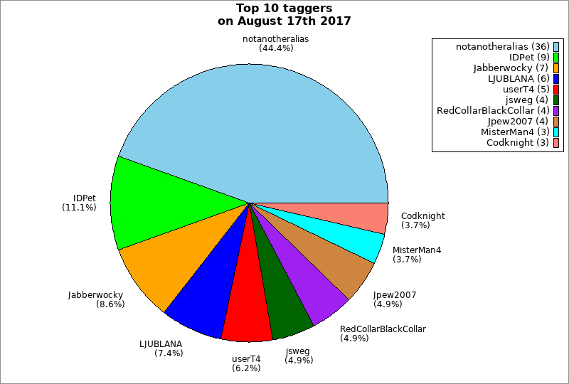 | Top 10 taggers on August 17th 2017 | ||