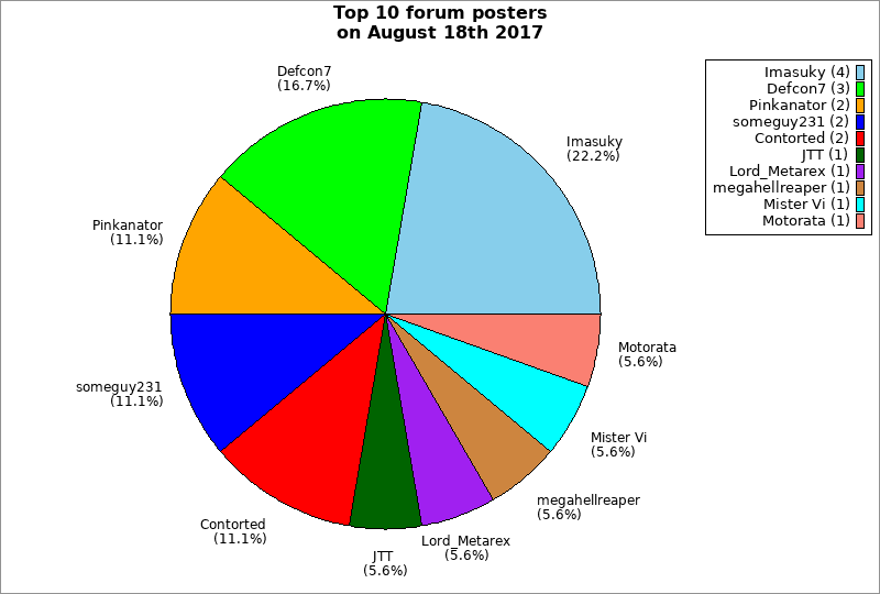 | Top 10 forum posters on August 18th 2017 | ||