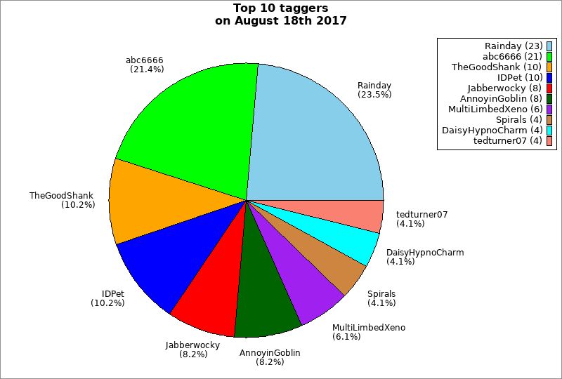 | Top 10 taggers on August 18th 2017 | ||