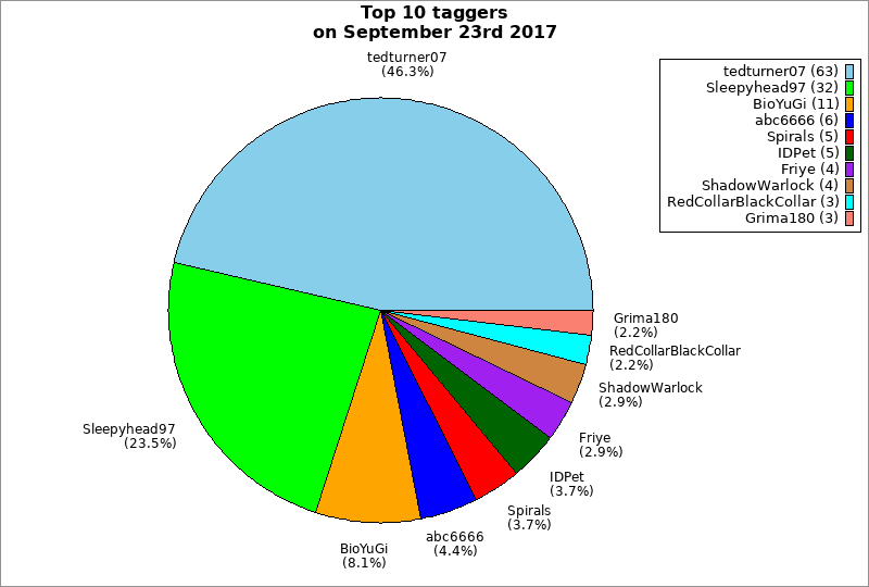 | Top 10 taggers on September 23rd 2017 | ||