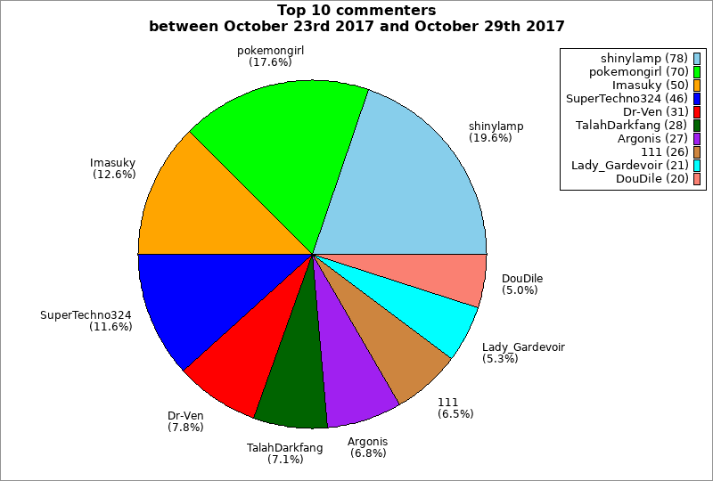 | Top 10 commenters between October 23rd 2017 and October 29th 2017 | ||