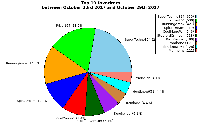 | Top 10 favoriters between October 23rd 2017 and October 29th 2017 | ||