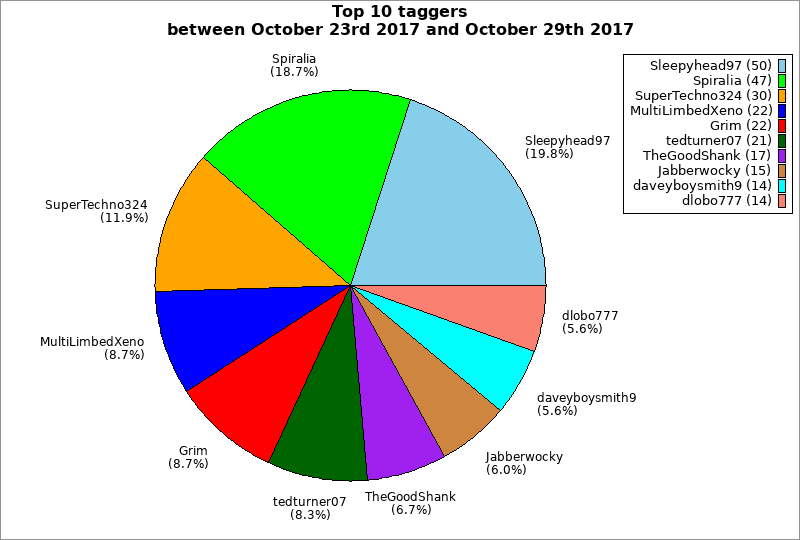 | Top 10 taggers between October 23rd 2017 and October 29th 2017 | ||