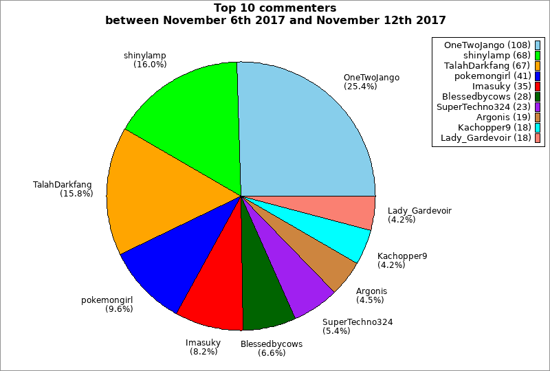 | Top 10 commenters between November 6th 2017 and November 12th 2017 | ||