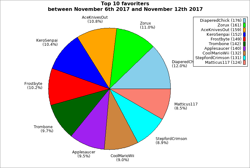 | Top 10 favoriters between November 6th 2017 and November 12th 2017 | ||