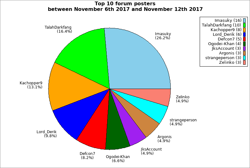 | Top 10 forum posters between November 6th 2017 and November 12th 2017 | ||
