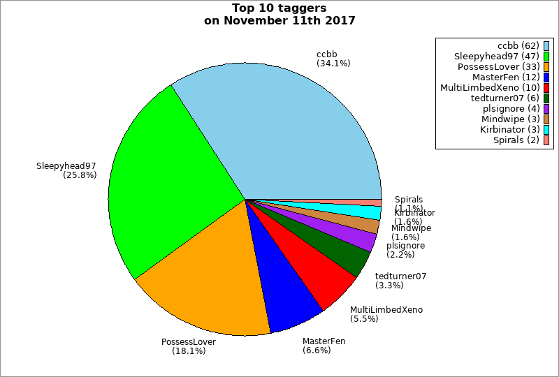 | Top 10 taggers on November 11th 2017 | ||