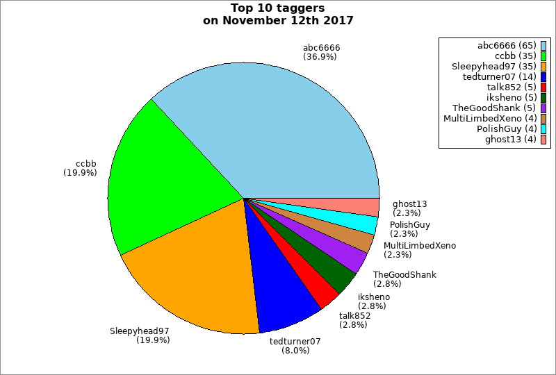 | Top 10 taggers on November 12th 2017 | ||