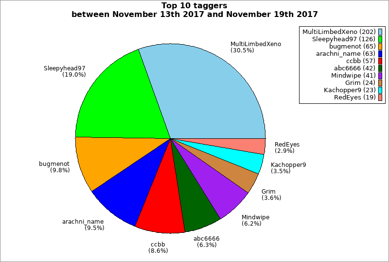 | Top 10 taggers between November 13th 2017 and November 19th 2017 | ||