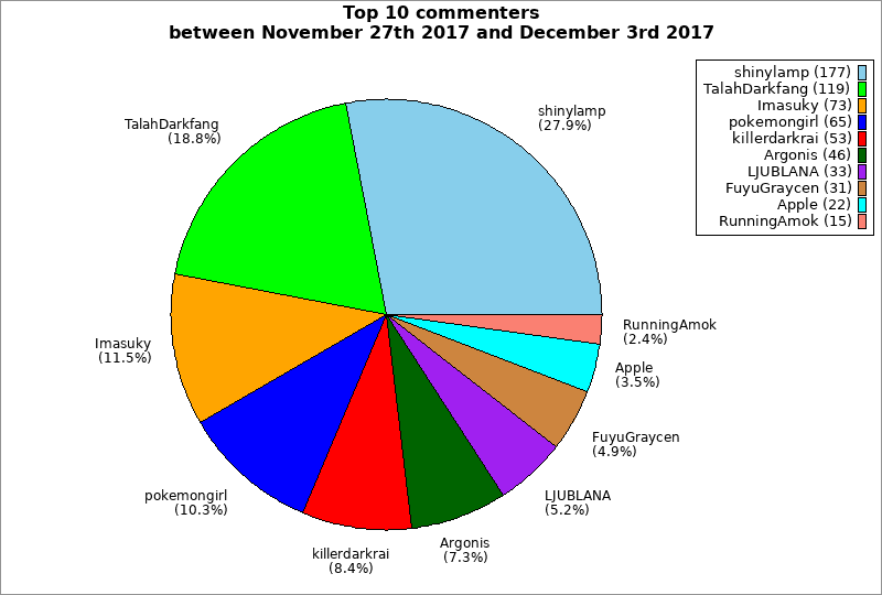 | Top 10 commenters between November 27th 2017 and December 3rd 2017 | ||