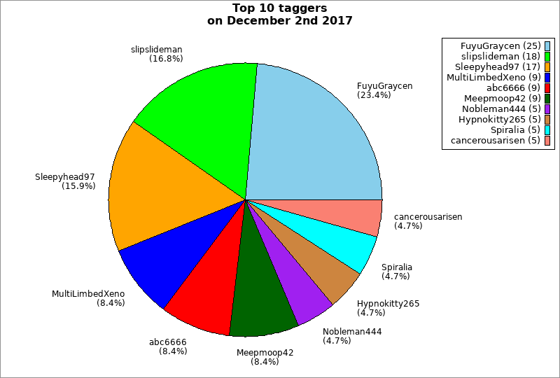 | Top 10 taggers on December 2nd 2017 | ||