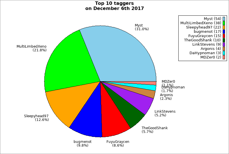 | Top 10 taggers on December 6th 2017 | ||