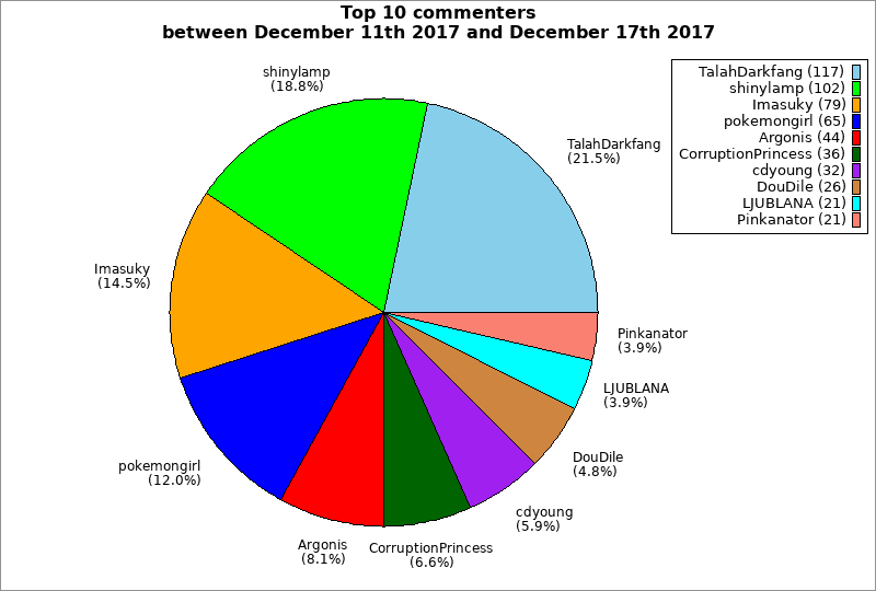 | Top 10 commenters between December 11th 2017 and December 17th 2017 | ||
