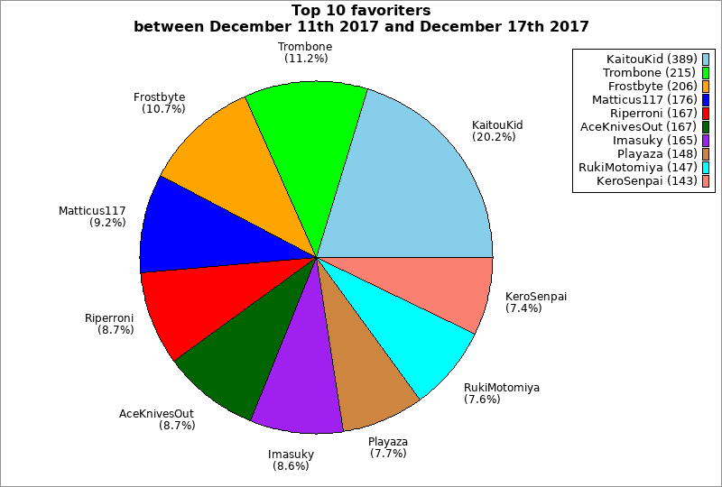 | Top 10 favoriters between December 11th 2017 and December 17th 2017 | ||