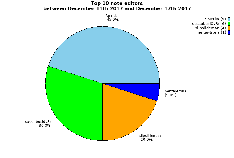 | Top 10 note editors between December 11th 2017 and December 17th 2017 | ||