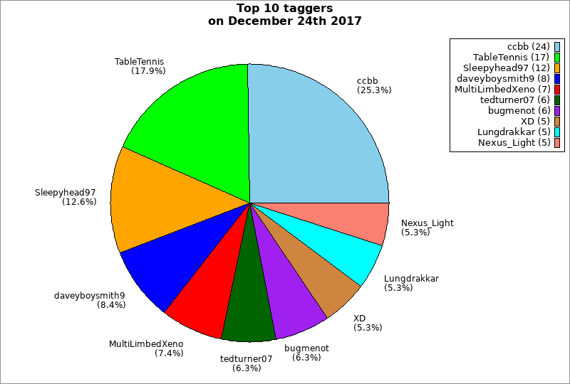 | Top 10 taggers on December 24th 2017 | ||