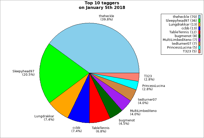 | Top 10 taggers on January 5th 2018 | ||