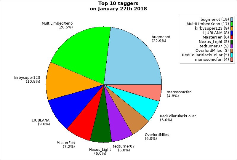 | Top 10 taggers on January 27th 2018 | ||