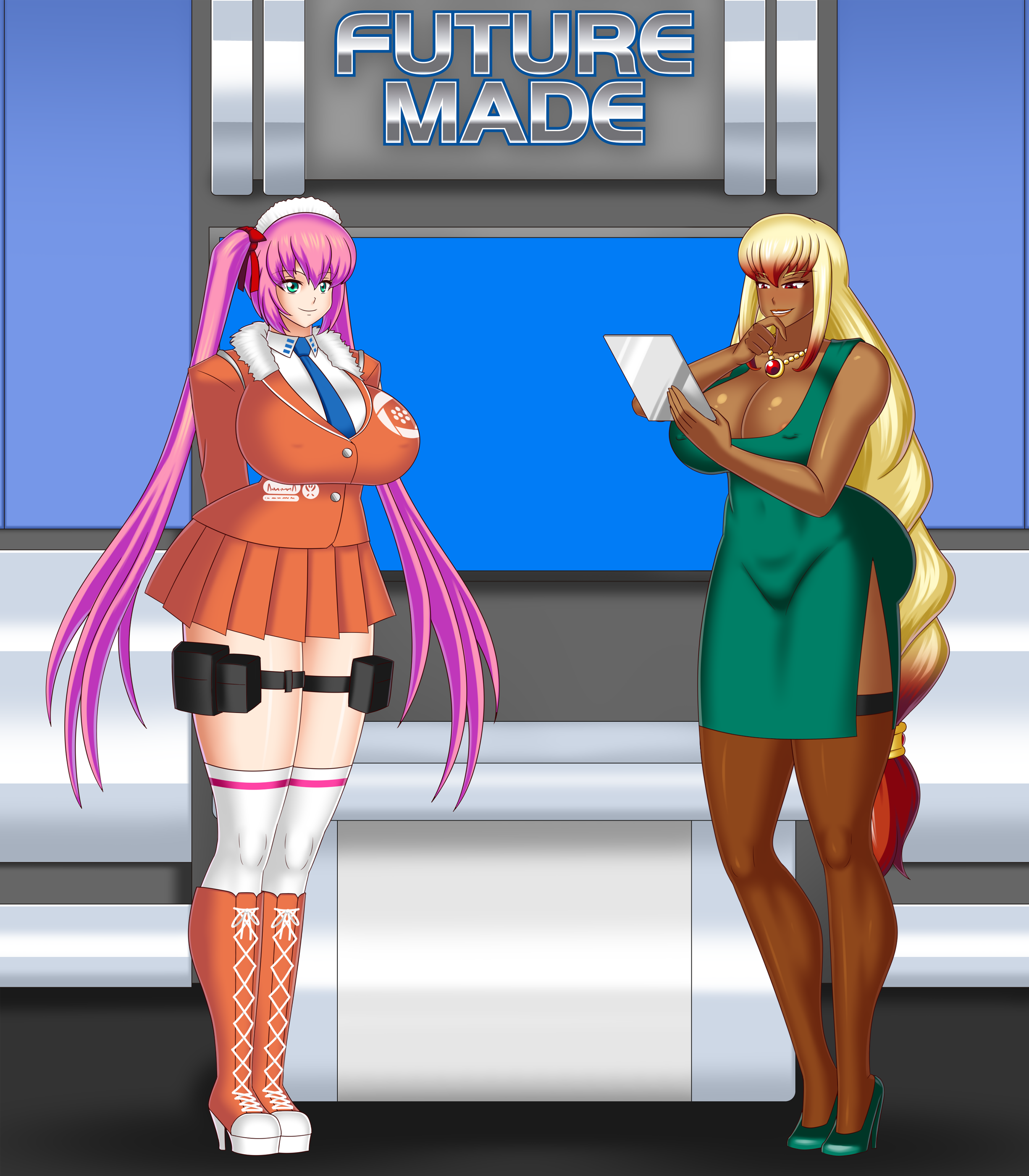 And thus she chose a pretty pink haired girl named Sayori Sione. She's a sexy and gorgeous multiverse fembot who needs a 'commander' to exist and thus has chosen Rebecca to be in such a position.