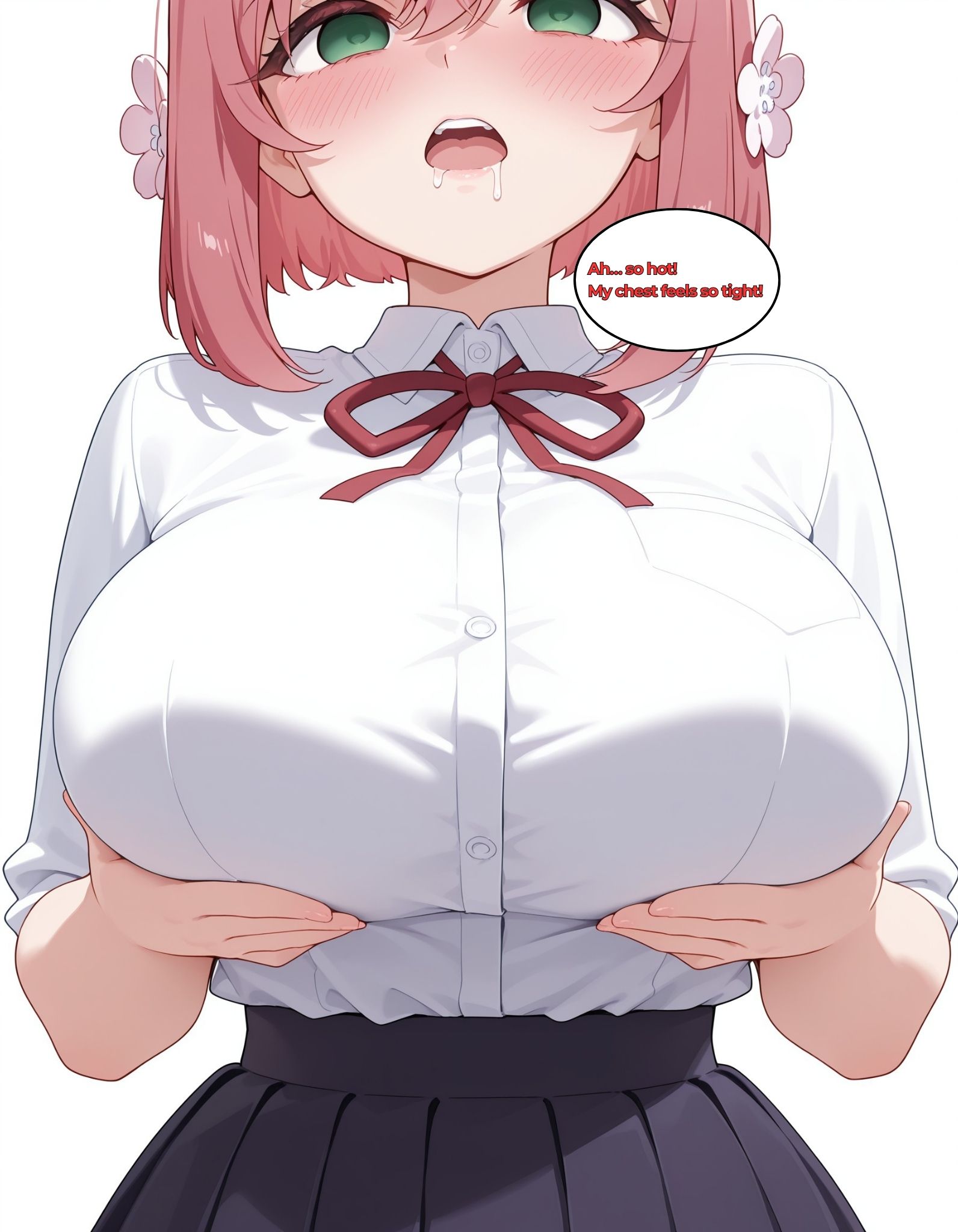 ai_art blush dialogue empty_eyes femsub hakari_hanazono pink_hair school_uniform text the_100_girlfriends_who_really,_really,_really,_really,_really_love_you