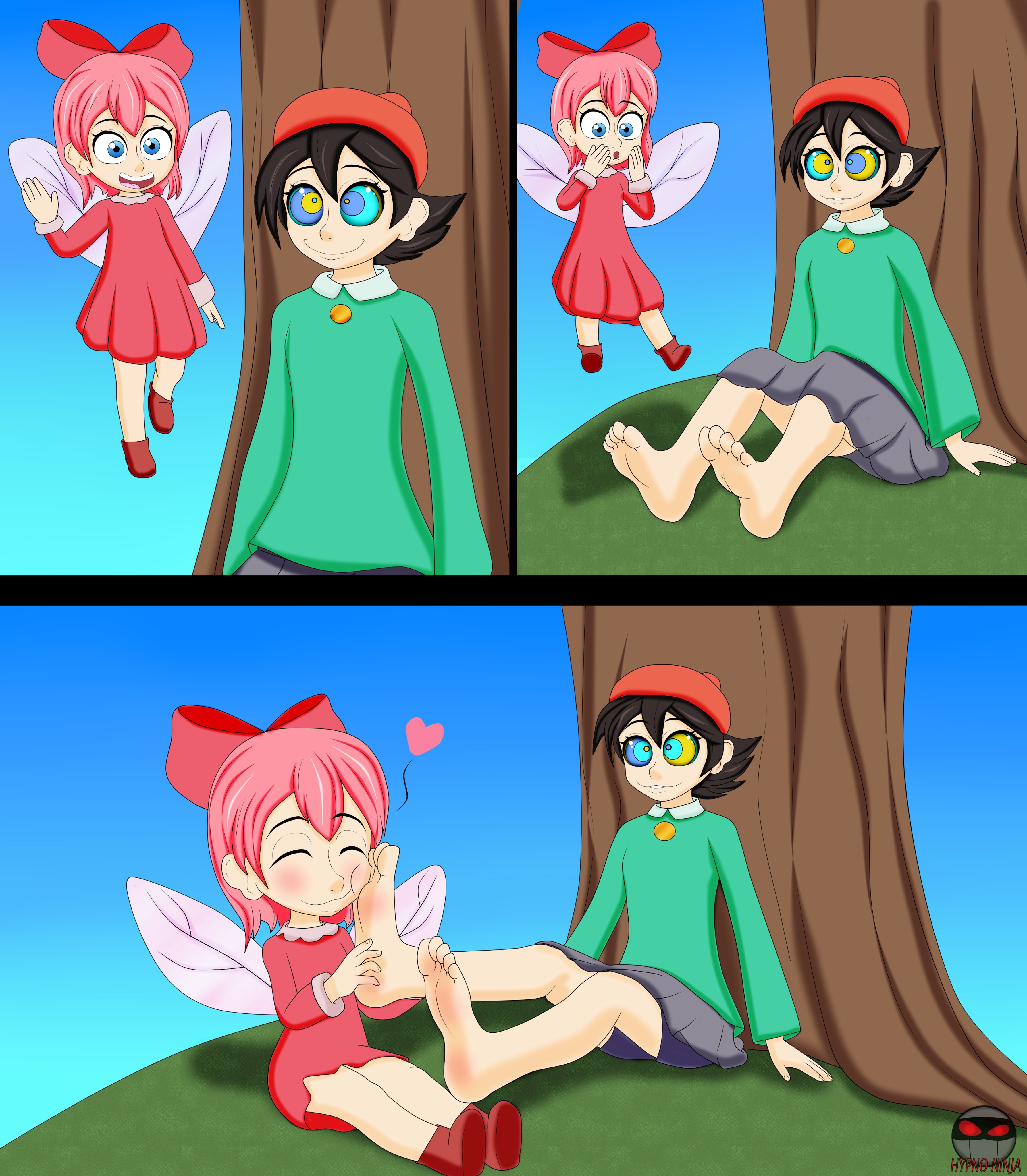 adeleine black_hair comic feet femdom femsub foot_focus happy_trance hypno_ninja kirby_(series) nintendo ribbon_(kirby) short_hair