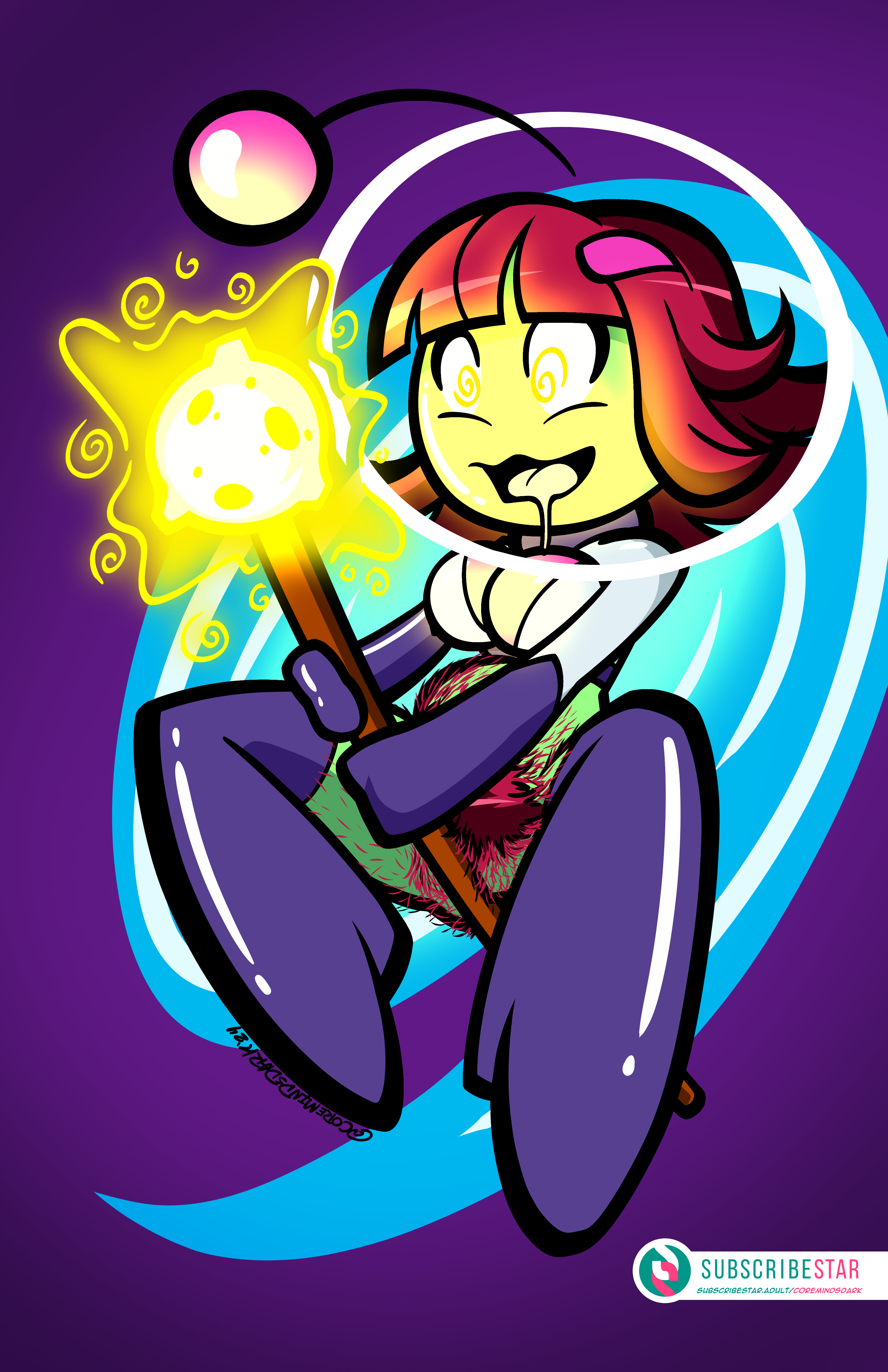 coremindsdark green_skin hypnotic_light luna_(mighty_milky_way) mighty_milky_way red_hair spiral_eyes tagme